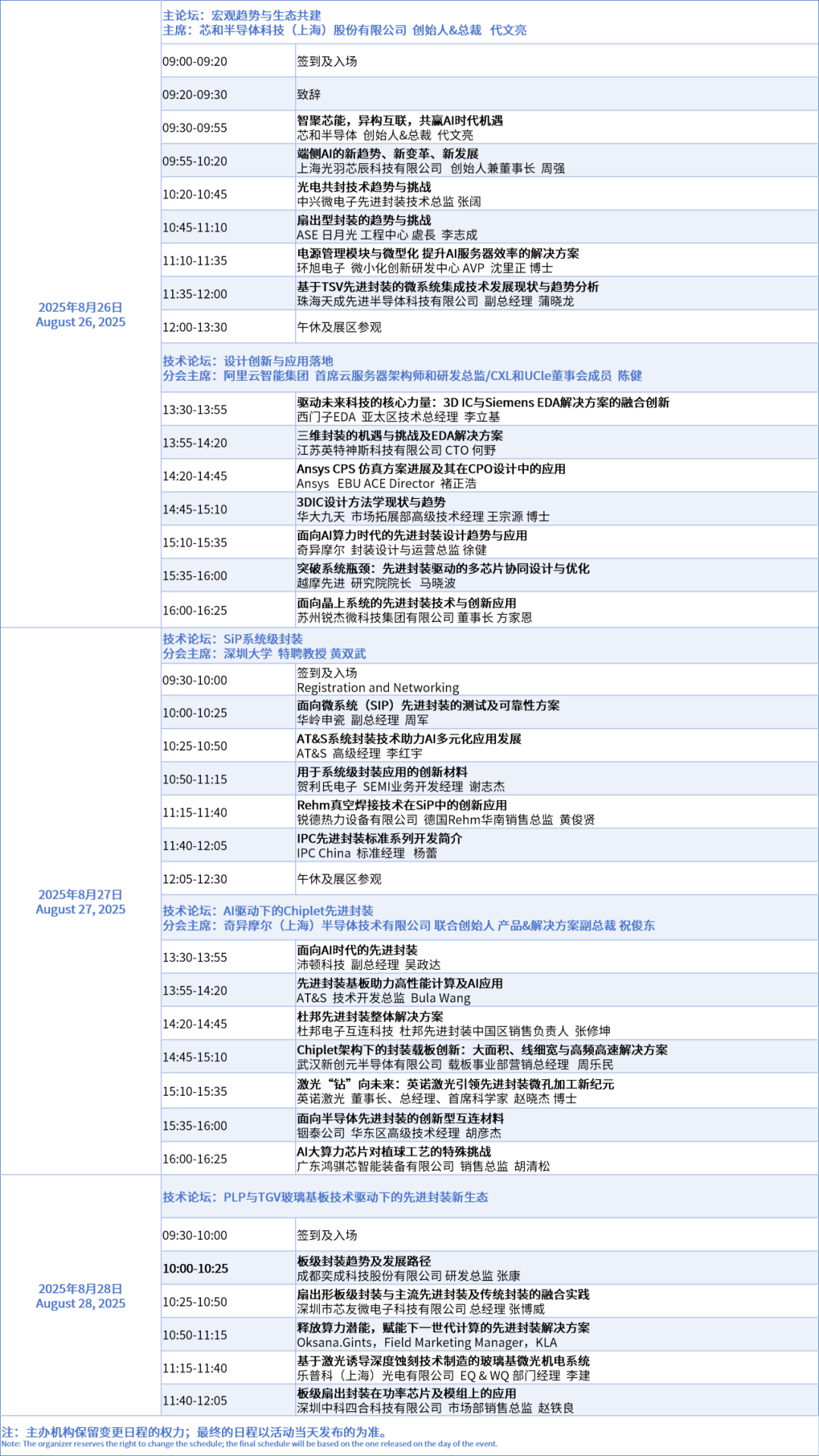 SiP China2025 将以“智聚芯能,异构互联——AI时代先进封装与Chiplet生态创新”为大会主旨,包含主旨演讲和技术报告,将聚焦AI算力需求爆炸式增长与摩尔定律放缓的矛盾,以先进封装和Chiplet技术为核心,探讨如何通过异构集成、先进封装和高速互连,突破芯片性能瓶颈,推动AI芯片和AI智算系统在能效上的革新。