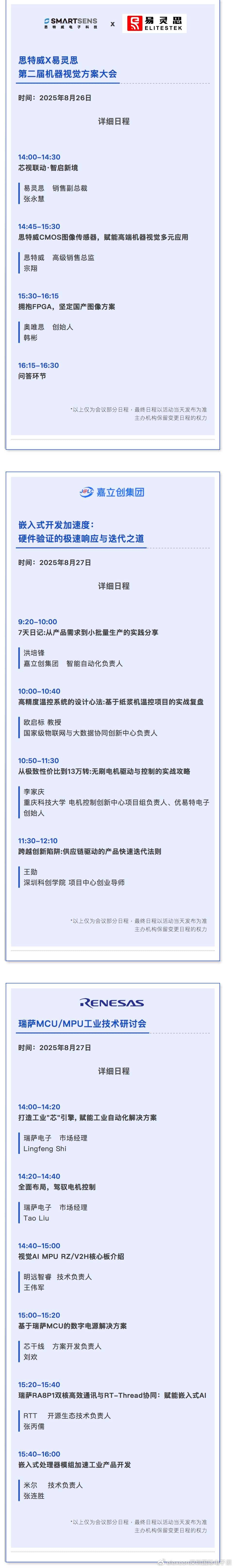 作为电子与嵌入式技术年度大展,elexcon2025将汇聚全球超过400+优质技术提供商,3w+专业观众,聚焦嵌入式与电子技术,展会同期将举办15+高峰论坛,涵盖边缘AI、具身智能、AI算力、智能驾舱、新能源汽车三电技术、机器视觉、SiP与先进封装等热门议题,超过70位专家参与演讲。