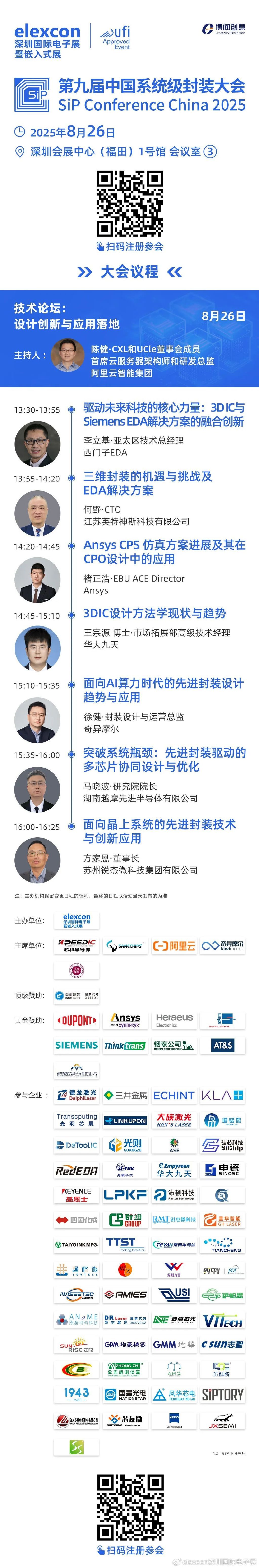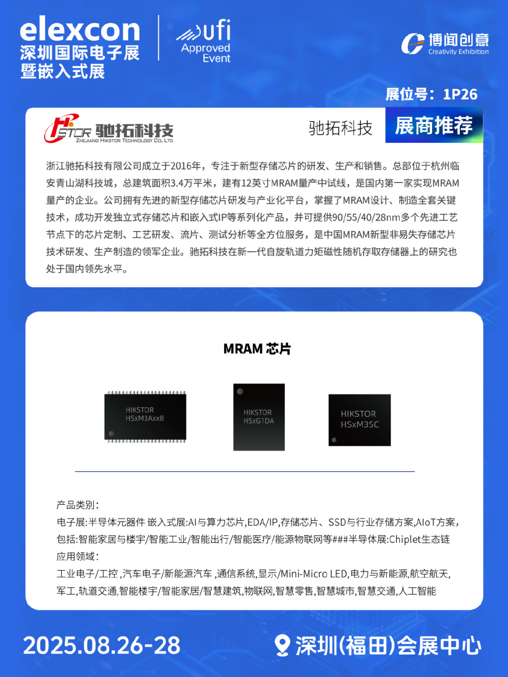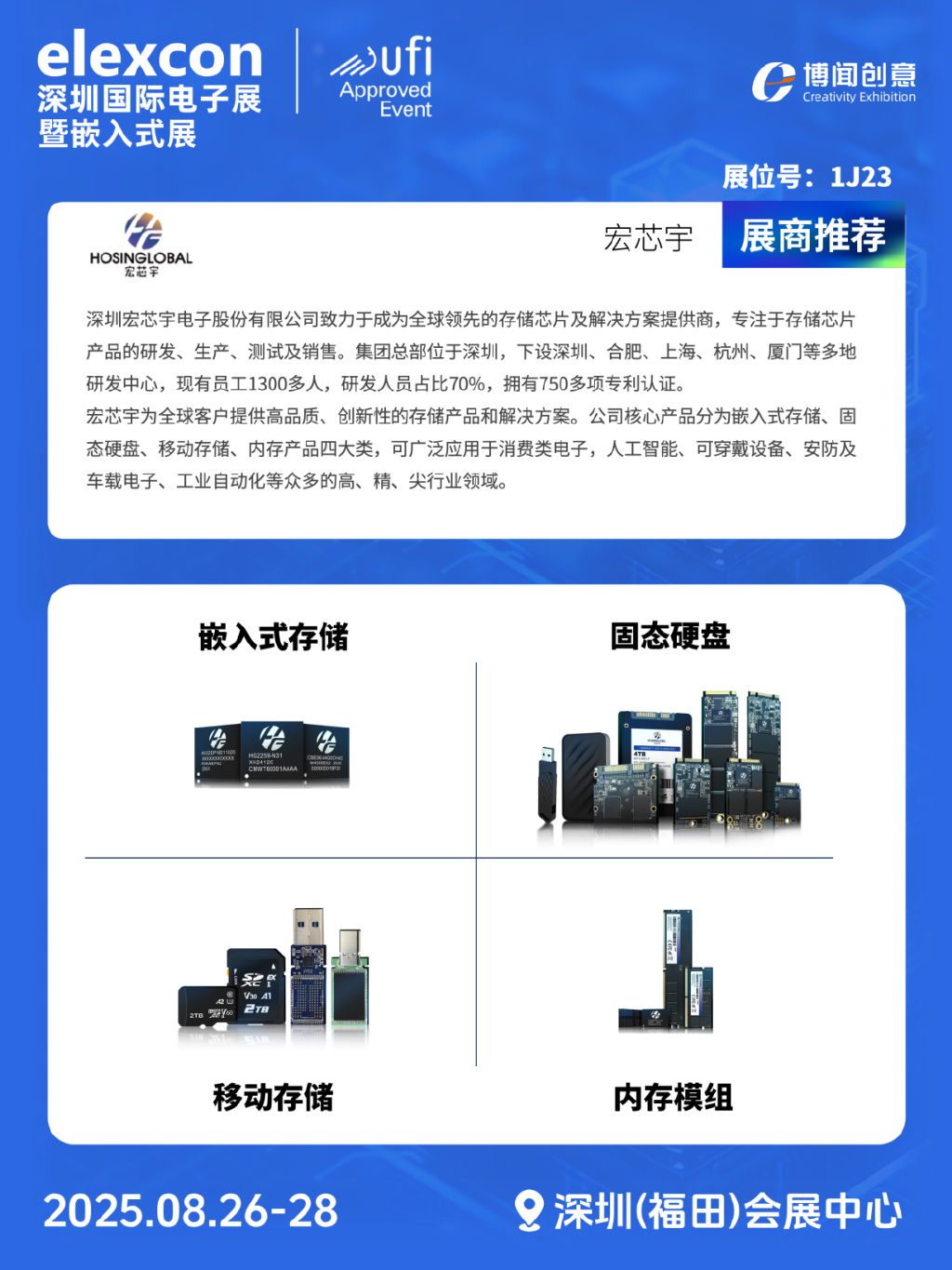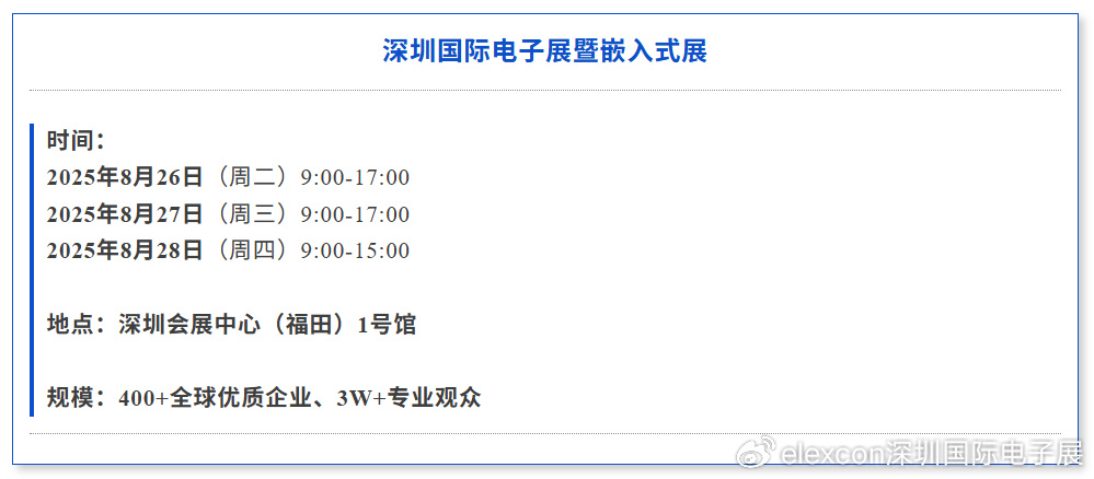 作为电子与嵌入式技术年度大展,elexcon2025将汇聚全球超过400家优质技术提供商,发布有关GPU、AI存算与边缘计算、AI存储与新型存储、高性能MCU/MPU、数字电源等嵌入式技术;GaN、高速连接等高性能电子元件组件;chiplet、AI电源系统级封装、PLP与TGV等先进封测技术等。